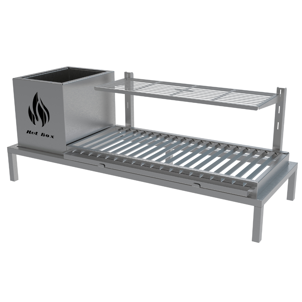 - Grelha de descanso para alcançar o ponto ideal no seu churrasco ou defumar legumes.