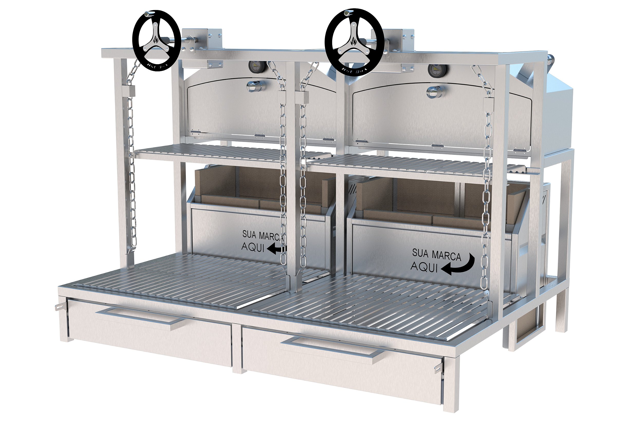O Modelo Clássica PRO MÁX é composta por, Firebox na parte traseira, com forno acima do firebox aproveitando todo o calor produzido pelo firebox... 01 ou 02 módulos para grelhas principais com sistema de elevação e com e grelhas de descanso. As grelhas são modulares e removíveis para facilitar a limpeza e a quantidade varia de acordo com o tamanho da parrilla adquirida. Acompanha aticaçador de fogo em inox.